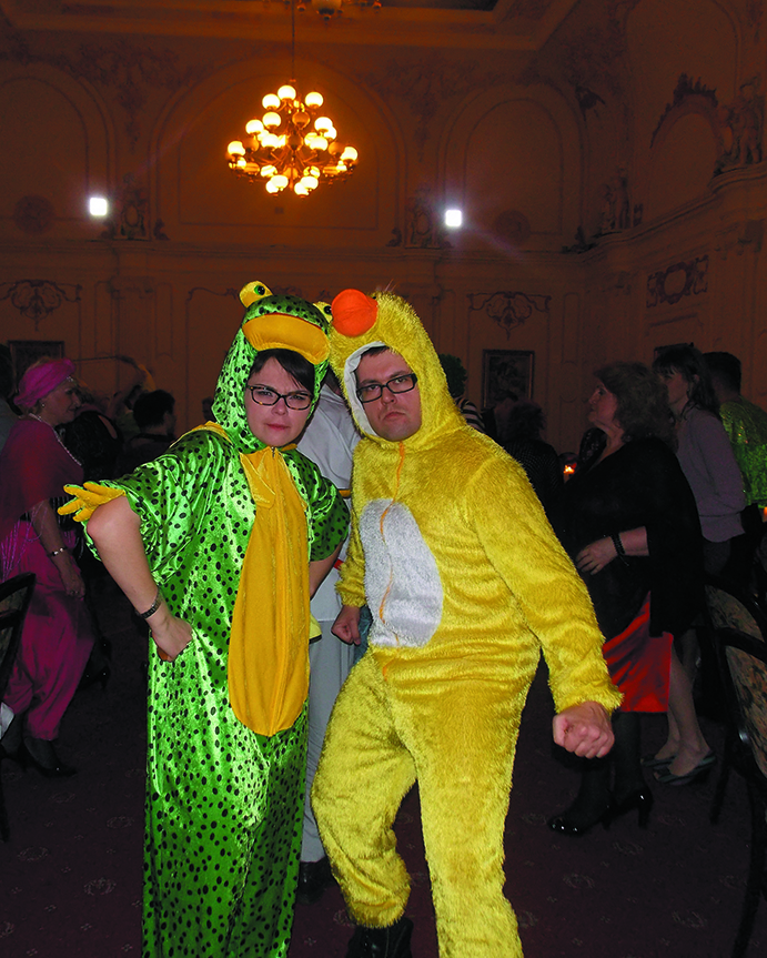Времени на подготовку „сказочного” костюма на вторую часть бала у меня и моей знакомой Илоны не было, и мы решили взять напрокат театральные костюмы, чтобы достойно выглядеть среди тех, кто уже знает „правила игры” на русских балах. Когда, переодевшись, мы вошли в зал, мне показалось, что даже стихла музыка и …разговоры, а все глаза были устремлены только на нас. Ой, наверное, перестарались мы с костюмами…утёнка и лягушки! Но на счастье, тут же из всех дверей начали появляться сказочные персонажи, не менее профессиональные и красочные, и мы вздохнули с облегчением… Началась вторая часть бала показом сказок, танцами „утят” и „медвежат”, песнями польскими и русскими, и мы даже не заметили, как наступило утро… Из Лодзи я вернулся с доверху заряженной жизненной энергией „батареей”, новыми знакомствами и „багажом” положительных воспоминаний. И сразу записал себе в календарь Староновогодний бал на следующий год.