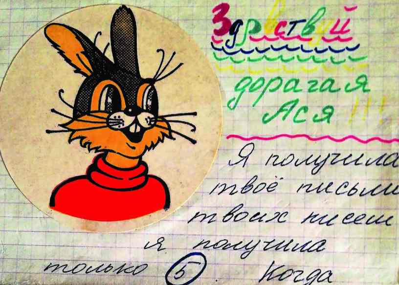 Это письмо Наташи из Новосибирска. Каждое из её писем начиналось: „Здравствуй, дорогая Ася!” Мы довольно часто писали друг другу о проблемах подростков: о наших кумирах, юношеских увлечениях, о школе, друзьях, о национальных праздниках: „Мне понравились твои наклейки. У вас очень красивые они! Когда я принесла письмо в школу, я показала его ученикам, и они тоже захотели переписываться. Если можешь, пришли мне адреса своих подружек или друзей.”